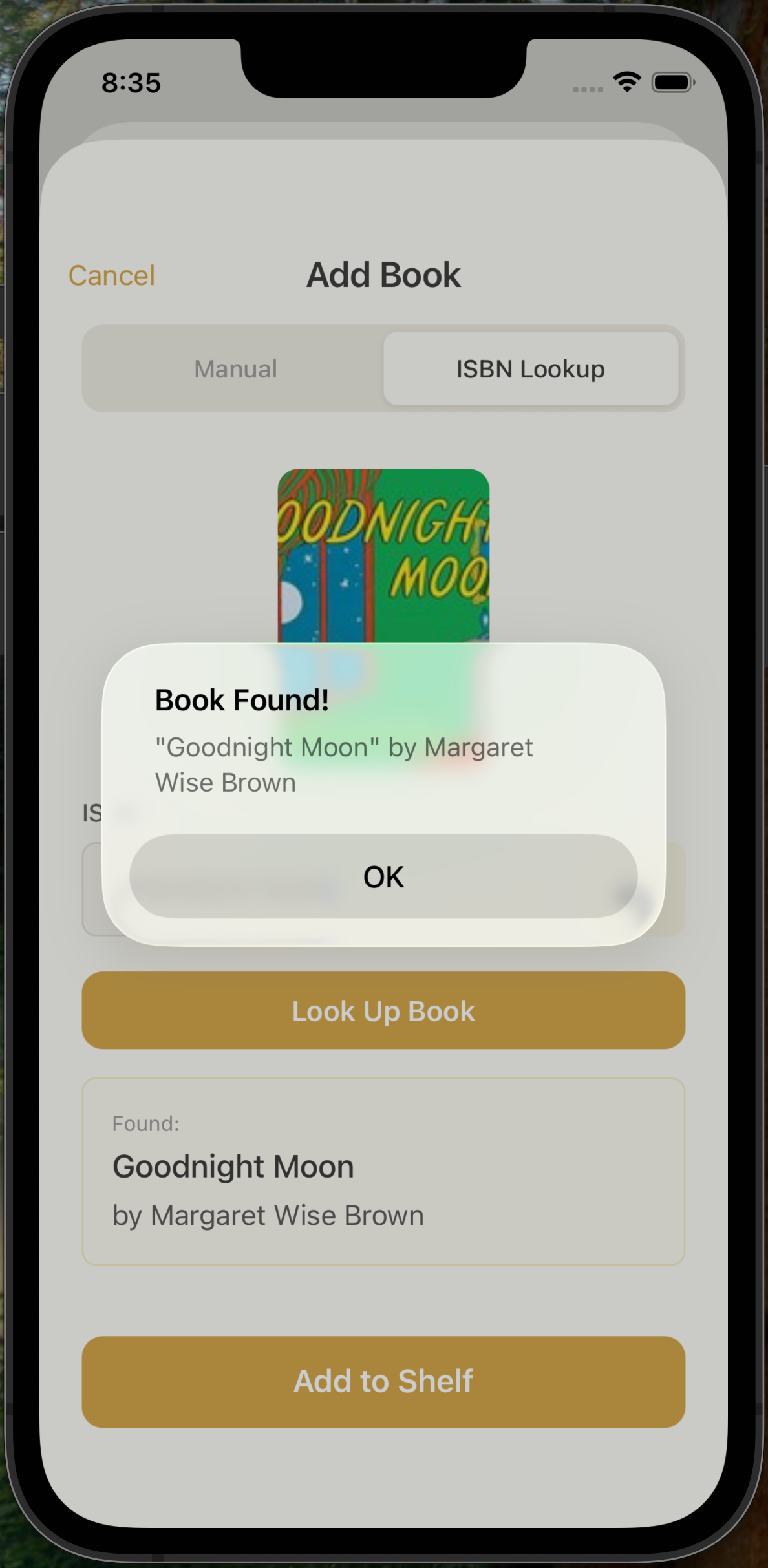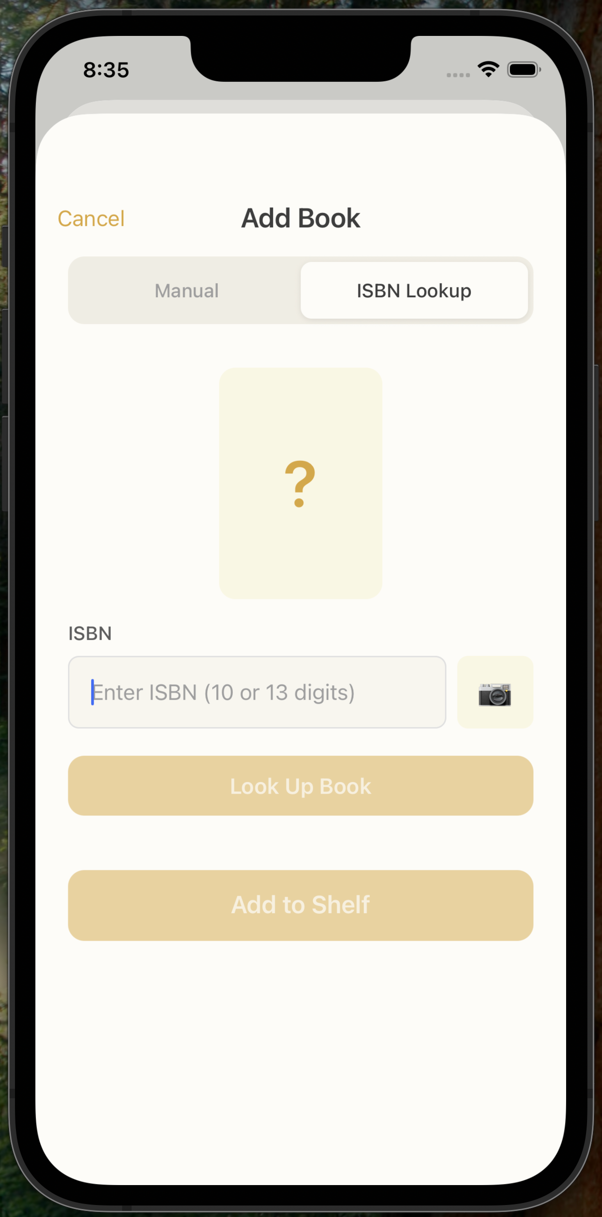 Add books manually or with ISBN Lookup